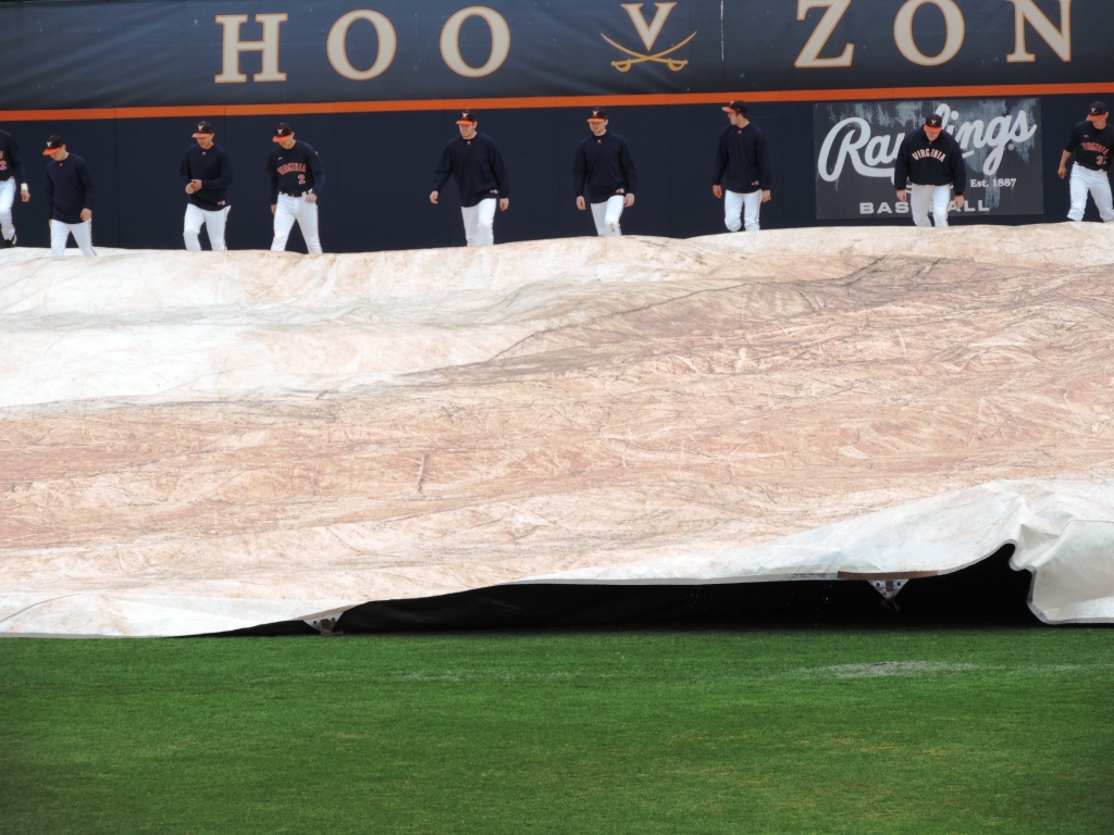 When asked about playing in the rain today, UVa’s Mike Papi (2-for-4 today, 6-for-10 in the series) quickly corrected a reporter after the game: “You mean the snow, or sleet, or whatever it was. It wasn’t fun.”