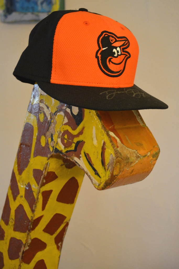 Yes, that’s a real batting practice cap. It once belonged to the Orioles trusty, side-arming, submariney reliever Darren O’Day. He signed it.