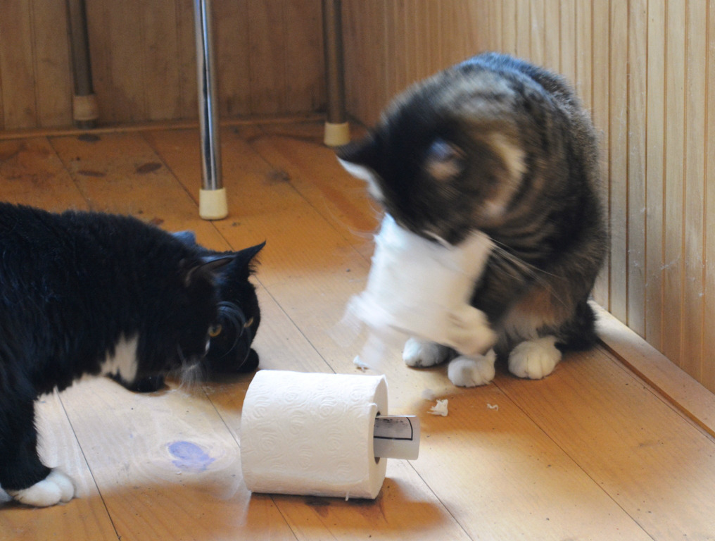 Tom-Tom, Zuzu, & Mookie knocking things over & checking them out. It won’t be long now …