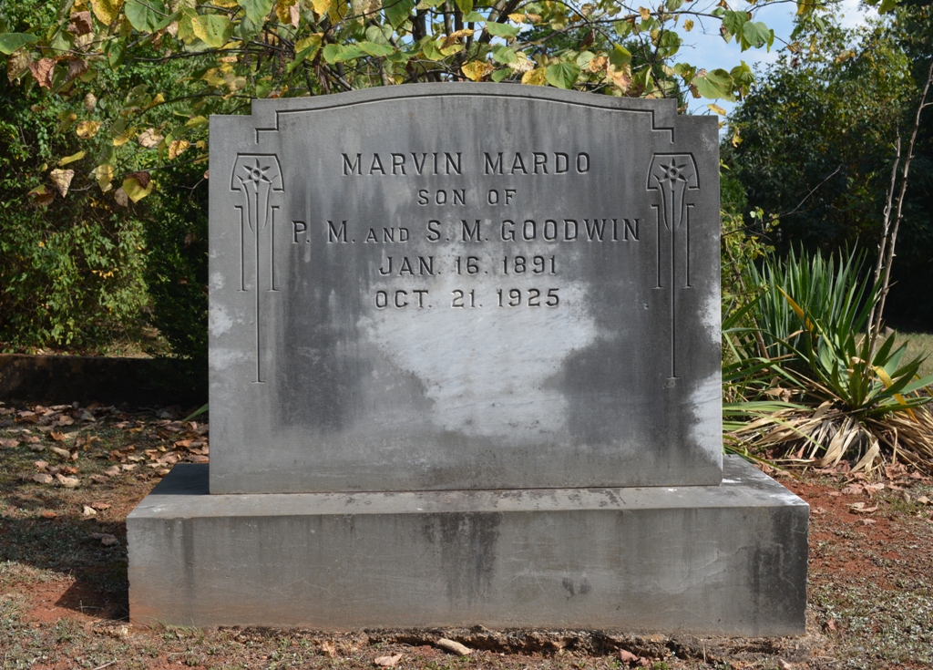 We found Marvin Goodwin, buried in a family plot. The tombstone marks him on one side, his parents on the other, and on the side his baby brother who died in 1895.