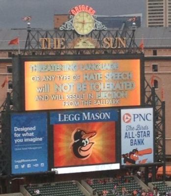 At Friday’s game at Camden Yards, the Orioles first game back at home since the Boston series, this message was issued before the game:
