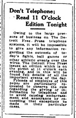 The fight was so heavily anticipated that The Detroit Free Press had to ask its readers – on the front page of the paper – not to call the paper to find out who won.