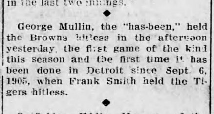 Thank you! I read somewhere that most Tigers fans don’t know George Mullin and that first no-hit game for the Tigers. Hmph.