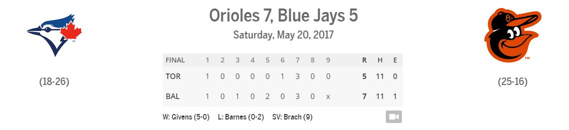 May 20, 2017    |    Orioles – 7   Blue Jays – 5