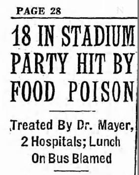 People were stricken by things all the time back then. Maybe it just happened so often you didn’t notice 70 baseball fans exhibiting “explosive vomiting” and being carried out from the upper deck “writhing and groaning” on stretchers.