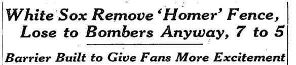 Just a few days earlier, the Sox had strung a wire fence across the outfield to shorten it. In two games, 14 home runs rocketed over the new fence.