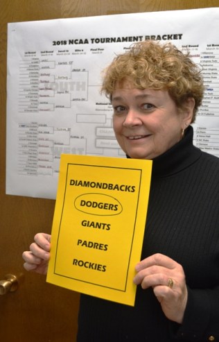 Colleen goes to baseball games occasionally, but she goes to Virginia basketball games always. This year she filled out her first NCAA bracket and posted it on her office door. She is still sad that Virginia lost in the first round.