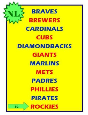 My incredible panel of experts provided the post-season teams — the Nationals, Reds, Dodgers, and Rockies in the NL … and … the Rays, Indians, Angels, and Red Sox in the AL. Now, I asked a few people in each of my Yoga classes to take those teams and choose the two that will play in the World Series.