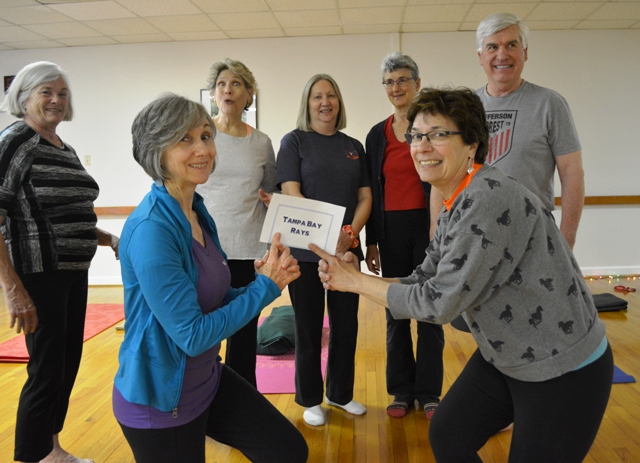 You all dispersed to your mats, so I figured with the time we had … to snap a quick shot and Pattie was game. 6 pm grabbed their pick and immediately pulled themselves into a group photo. But, look at the outcome … your 4:30 pm pick defeated the 6:00 pm pick. Mookie says so!
