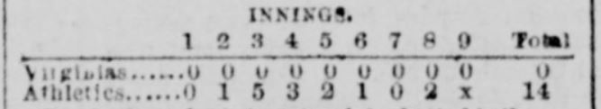 And, I’m grateful to the Richmond Dispatch editors who, in 1884, generally put all the baseball box scores on the front page in the second column from the right. (Trust me, continuity was not a thing in 19th-century newspapers, and box scores were buried all over the place back then. Thank you, Richmond Dispatch.)
