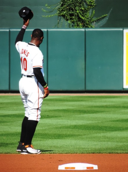 So, on Saturday, the Orioles congratulated Adam Jones for his family’s donation of $150,000 to community work in Baltimore. And, on Sunday the Orioles congratulated Adam Jones for being chosen Most Valuable Oriole.