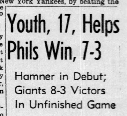 That was Ralph “Putsy” Caballero, who was 16. He, too, was making his major league debut for the Phils.