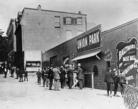 Editor/Husband will need to come along. Baltimore’s Union Park in 1895 had a brand new grandstand – to replace the one that burned that winter – and ladies had their own segregated section with their own private entrance, but none were allowed to a game unescorted.