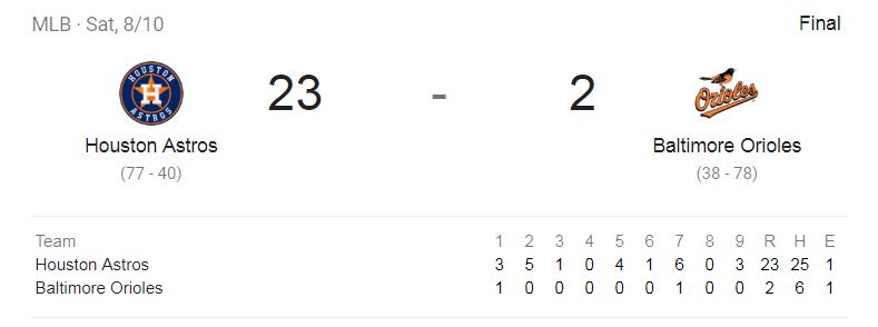 On August 14, 2019, after their 82nd loss of the season, the Baltimore Orioles were officially eliminated from the postseason.