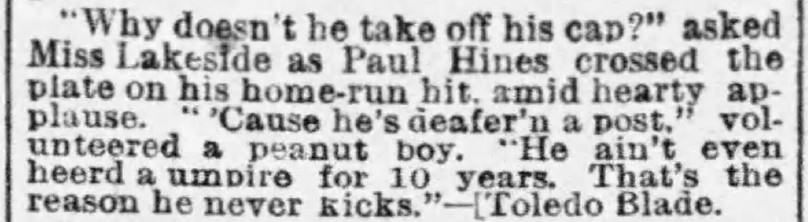 Or, how about the equally insensitive Dayton Herald that wrote that “Hines is so deaf that he cannot hear a cannon cracker go off under his nose.”