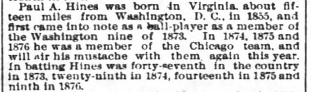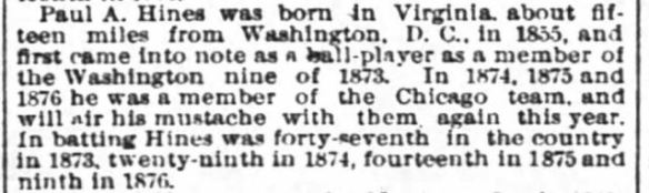 It’s not until I find a story in an 1877 Cincinnati Enquirer that I learn that Paul Hines “was born in Virginia, about 15 miles from Washington, DC.”