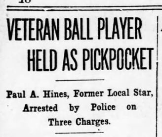 But, baseball fans didn’t. I think it was this last sad story that becomes the turning point. After that, Hines becomes suspect. His accomplishments are increasingly questioned. He is never seriously considered for the Baseball Hall of Fame. He becomes just a blurry footnote in a story that always ends with “he was arrested as a pickpocket in 1922.”