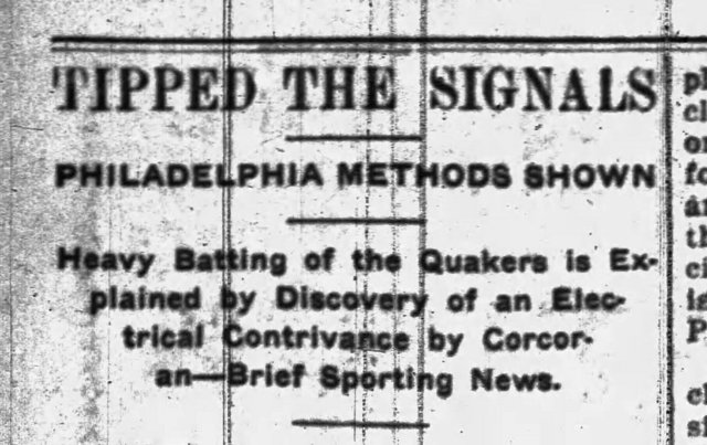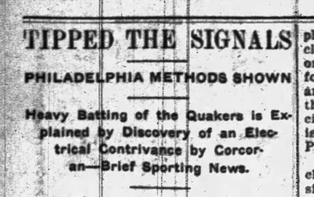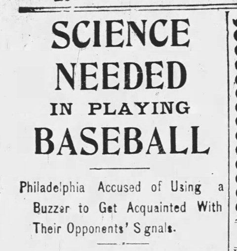Ain’t science great? Who needs to bang a bat on a can when I’ve got this smart box that will buzz my leg and tell me exactly what pitch is coming? I can transfer that signal to the batter, exactly, in no time flat.