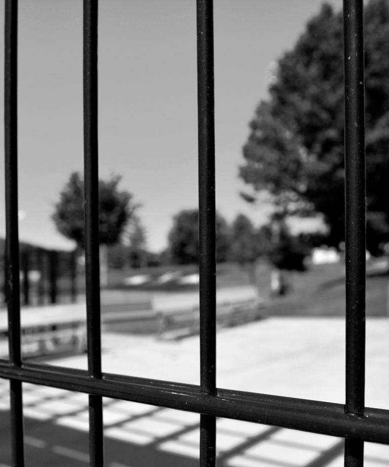 Smelly was small enough that he could turn himself sideways and wedge his shoulder between two of the gate’s metal bars. This allowed him to push his cheek so hard into one metal bar that his ear was almost – almost – inside the park.