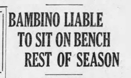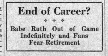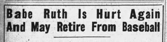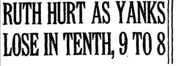 After leaving the game “Ruth passed the afternoon with a very gloomy expression and was moved to remark that he would resume his normal operations in three or four days, a prophesy which is open to doubt,” New York’s Daily News reported.