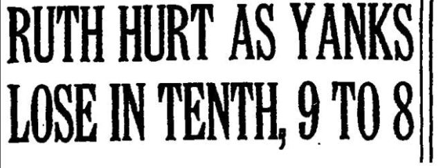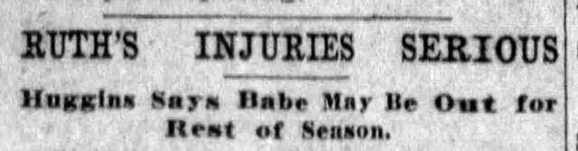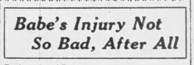 After leaving the game “Ruth passed the afternoon with a very gloomy expression and was moved to remark that he would resume his normal operations in three or four days, a prophesy which is open to doubt,” New York’s Daily News reported.