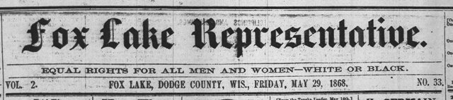 It’s on May 29, 1868 in their little four-page weekly Fox Lake Representative that I found this notice for a game to be played between the Fox Lake team and the team from neighboring Westford that afternoon.