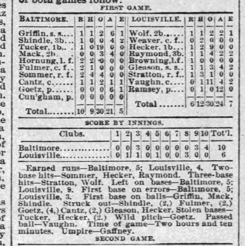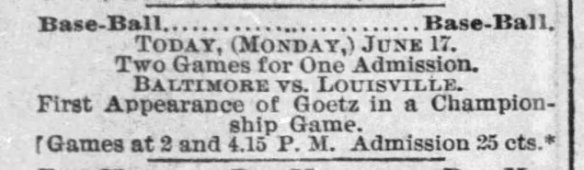 But, it is the June 17, 1889 regular season game against the Louisville Colonels, the first game of a doubleheader, that is the game we care about.