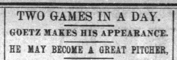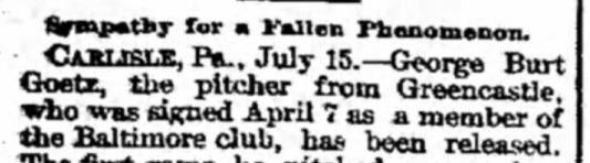 “With hard steady work and a display of intelligence, [Goetz] may become a success. At times he would fire the ball over the plate with a speed like a rifle shot, but when men were on bases he was nervous,” The Baltimore Sun reported.