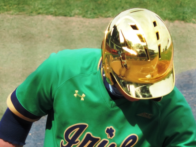 And, check out Notre Dame’s shiny pot-o-gold batting helmets.