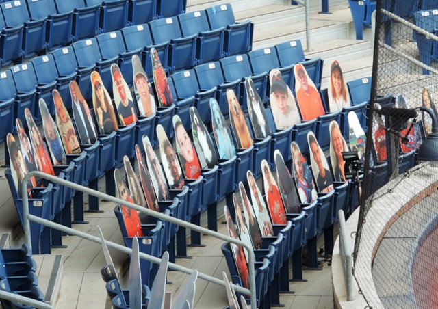 The University of Virginia is slowly, slowly letting people dribble back in to baseball. And, yesterday, we got to be part of the dribble. Where you sit is assigned and clearly marked (and if one should sit outside their approved “safe seats” an usher will politely assist in proper re-seating). Masks, always. Hand sanitizer stations everywhere.