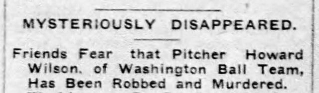 Wilson goes “missing” in October 1903 – between his first and second season with Washington. He leaves Washington on September 30 headed for home in Philadelphia and carrying between $600 and $1,000 in cash. When he hasn’t shown up two weeks later, his father contacts the police, believing he has been robbed and murdered.