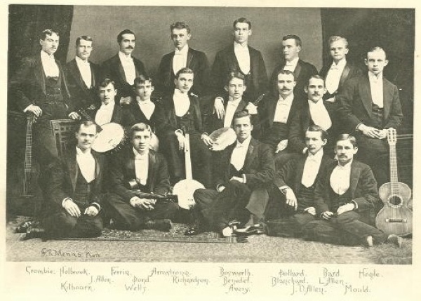 University of Vermont yearbook, 1890s. Banjo Club. Arlie is middle row, second from the left.
