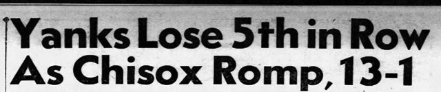 The Yankees had last won a game back on May 8. In their next five games – all losses – the Yankees were outscored 40-12.
