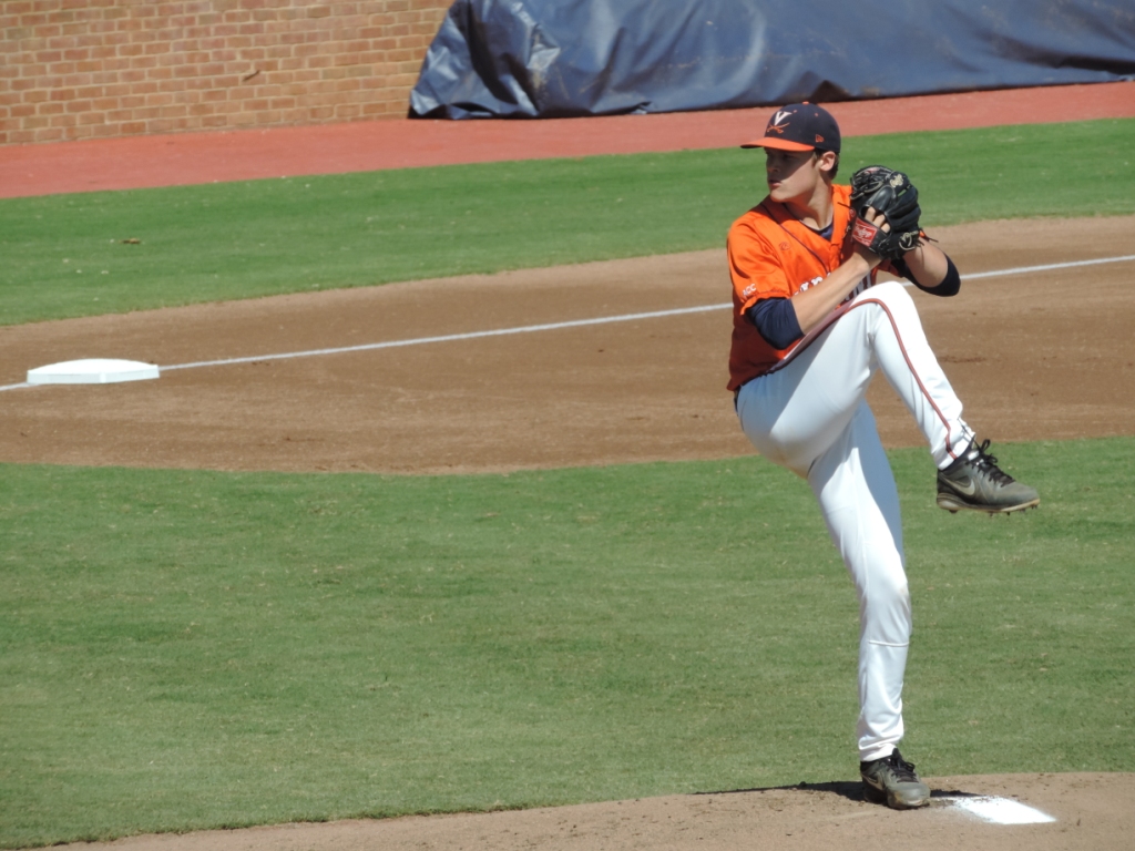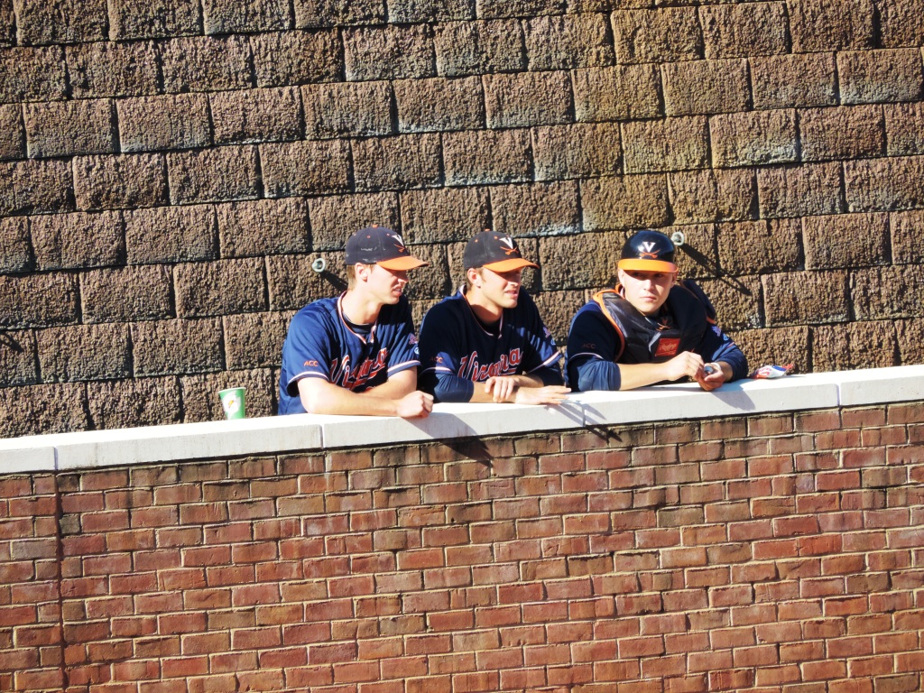 Here is the University of Virginia’s Nate Irving sitting in the UVa dugout.