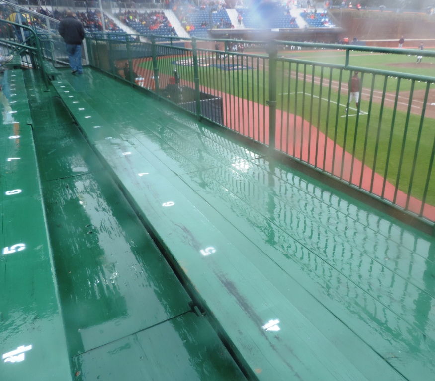 Meanwhile, back in Norfolk, they played a few rainy innings (including half-innings that were only two outs long … and one half-inning where no outs were recorded at all). They finally unrolled the tarp and called it a day for their “pretend” game and the Orioles flew off to Baltimore.